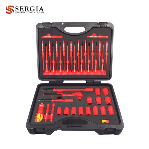 Ensemble d'Outils de 41 Pièces de Taïwan avec Tournevis Isolé VDE 1000V, Douilles et Clé d'Armoire